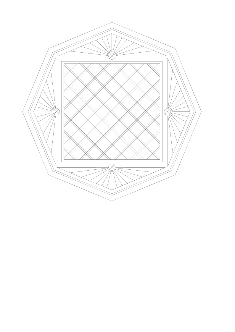 Grondplaat voor de houder voor de vierkante onderzetters (9x9 cm). Het patroon bevat ook de markering voor de vier gaten voor de rond stokjes. Ronde stokjes hebben een diameter van 6 mm. Voor 6 onderzetters is een lengte van 7 cm voor de stokjes voldoende.